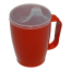 Čaša za bolesnike s jednom ručkom i jednim nastavkom s usnikom, širine 4 mm. Volumen 280 ml. Lako se održava, stabilan je i steriliziran u autoklavu. Pogodan je i za pranje u perilici posuđa (do 65ºC) i za korištenje u mikrovalnoj pećnici. Materijal: polipropilen. Boja: crvena