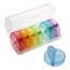 Jedinstveni okrugli oblik omogućava jednostavno i sigurno spremanje tableta za svaki dan u tjednu. Ima 7 spremnika s označenim danima u tjednu koji se lahko otvaraju. Stane u džep i idealan je za putovanje. Spremnik učinkovito štiti lijekove i druge tablete od vlage i oksidacije. Prozirni materijali omogoćavaju brzu provjeru sadržaja spremnika. Izrađen je od plastike prehrambene kvalitete (PP) koja ne sadrži BPA niti lateks. Napredna 3D tehnologija osigurava trajnost ispisa. Lako se čisti vlažnom krpom.